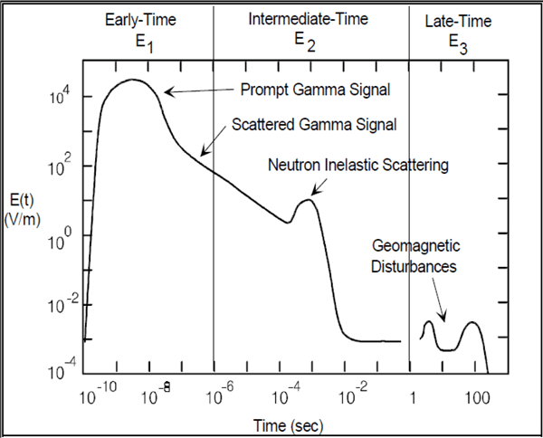 Nuclear explosions in or above the earth's atmosphere produce an intense electromagnetic pulse (EMP) by the physical phenomenon known as “Compton effect or Compton scattering”. This electromagnetic pulse is termed as nuclear EMP or (NEMP), while a detonation caused at an altitude above 40 km creates a pulse known as high-altitude EMP. The typical High Altitude Electromagnetic Pulse is defined as a combination of three consecutive pulses (E1 early time, E2 intermediate time,